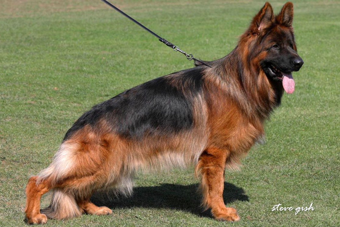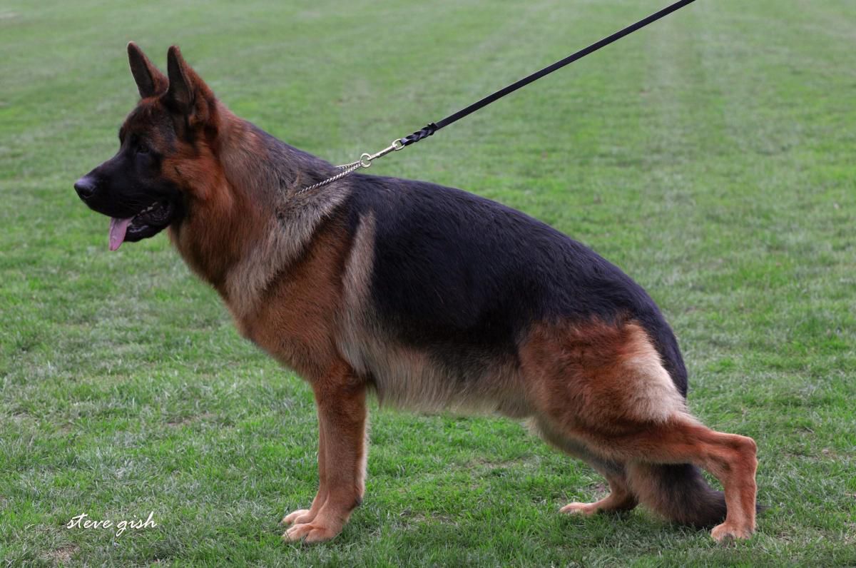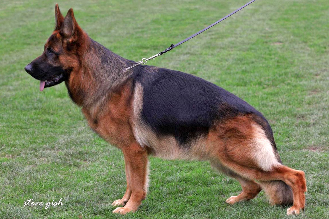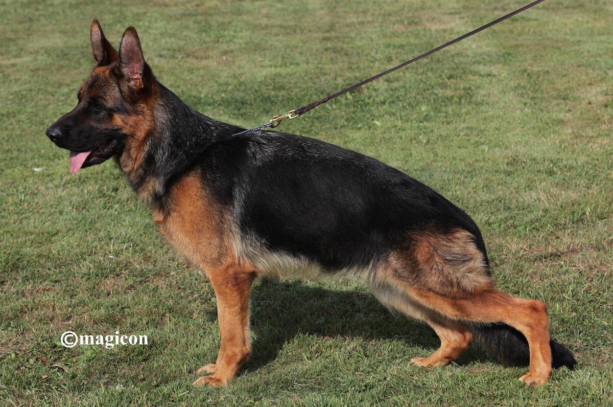 Large, strong, expressive, very good ratio, high withers, firm back, croup should be a little longer in good position. Balanced chest, good angulation of the fore and very good angulation of the hindquarters, wide toe in front, straight kicks in the back, good, powerful, expansive gaits. TSB pronounced.