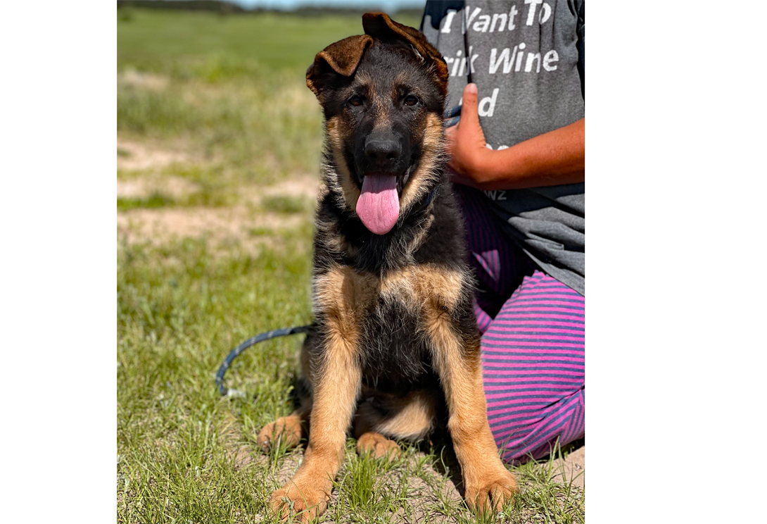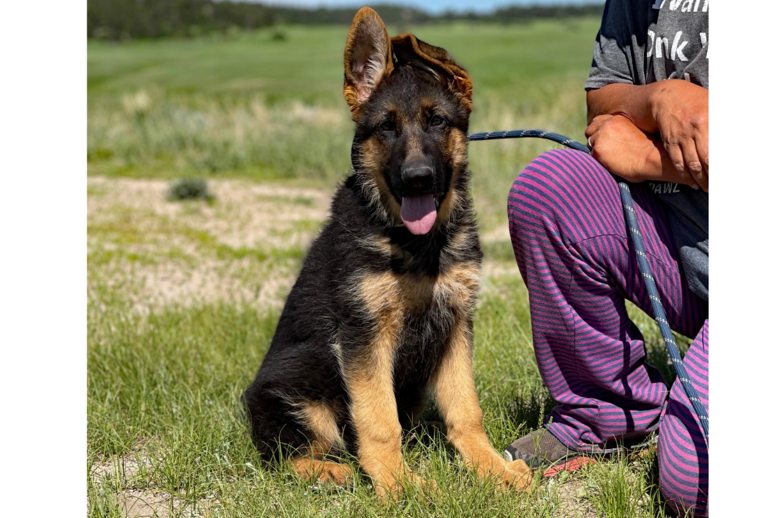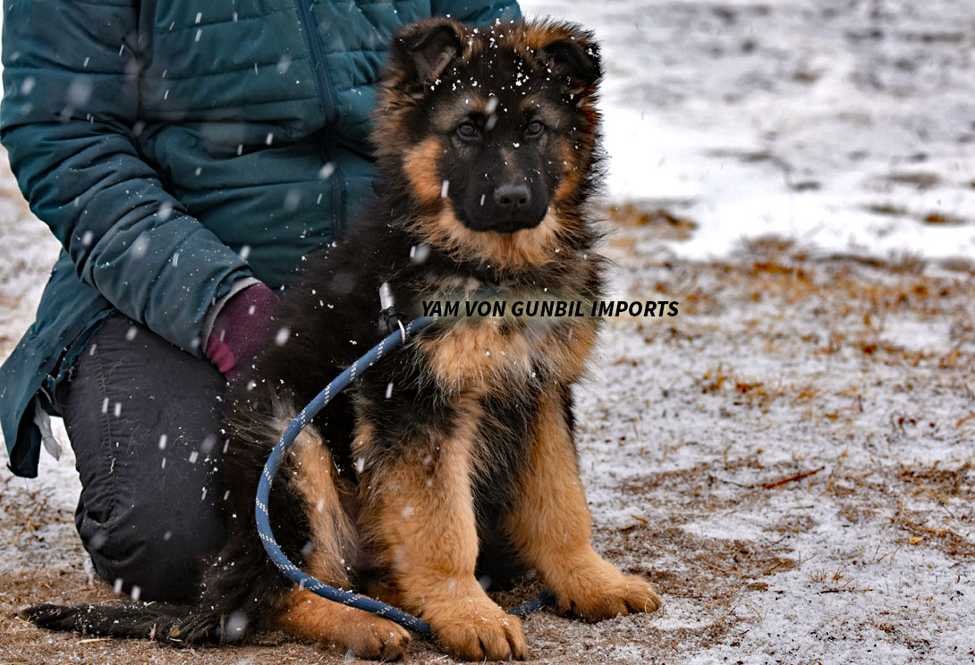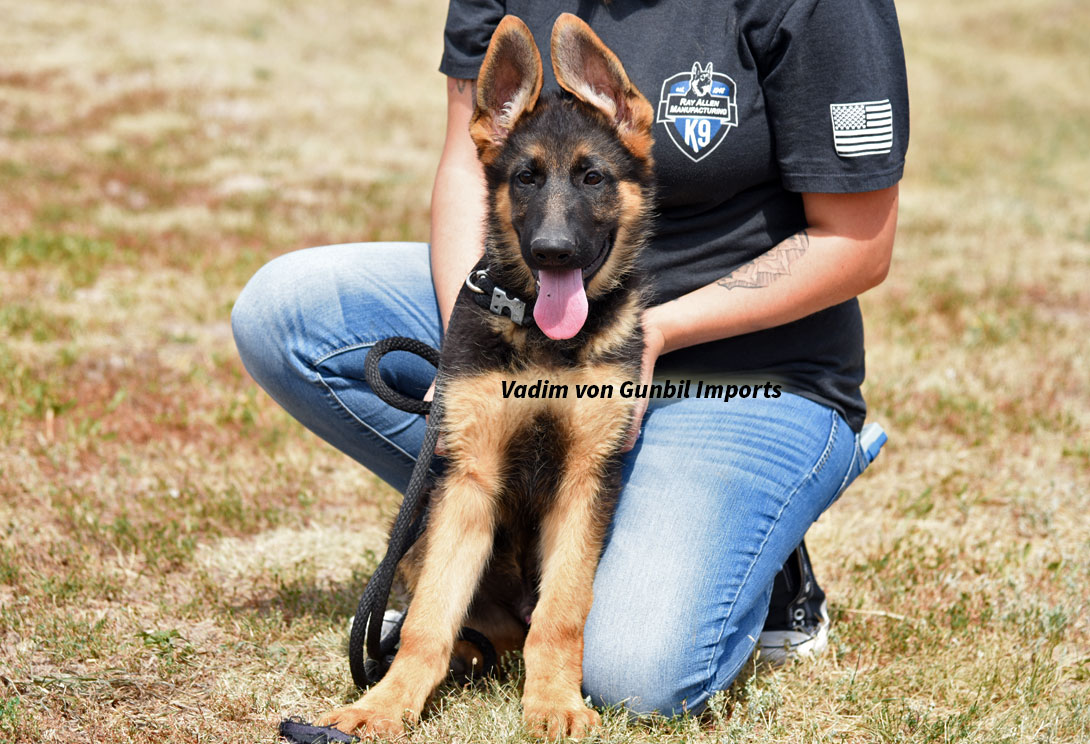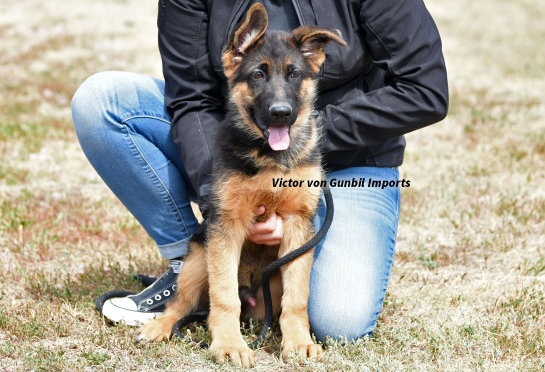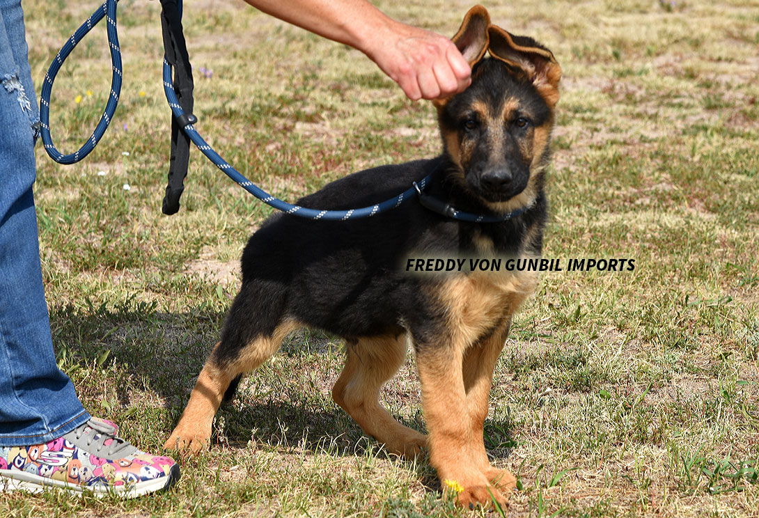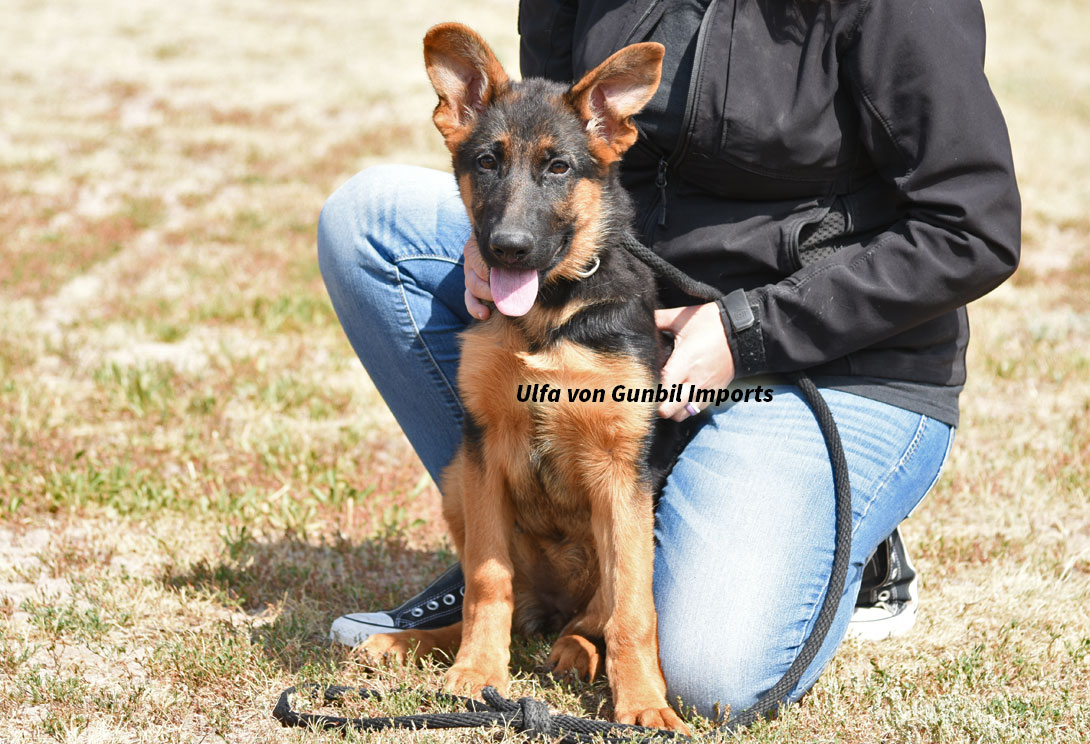 Large, medium-strong, very typey and expressive female, very good pigmentation, expressive head, very nice mask, high withers, firm, straight back, good position and length of croup, good angulation in front, very good hindquarters, balanced chest conditions, correct front and stride sequence, very good movement, powerful supply, free forward movement. TSB pronounced.