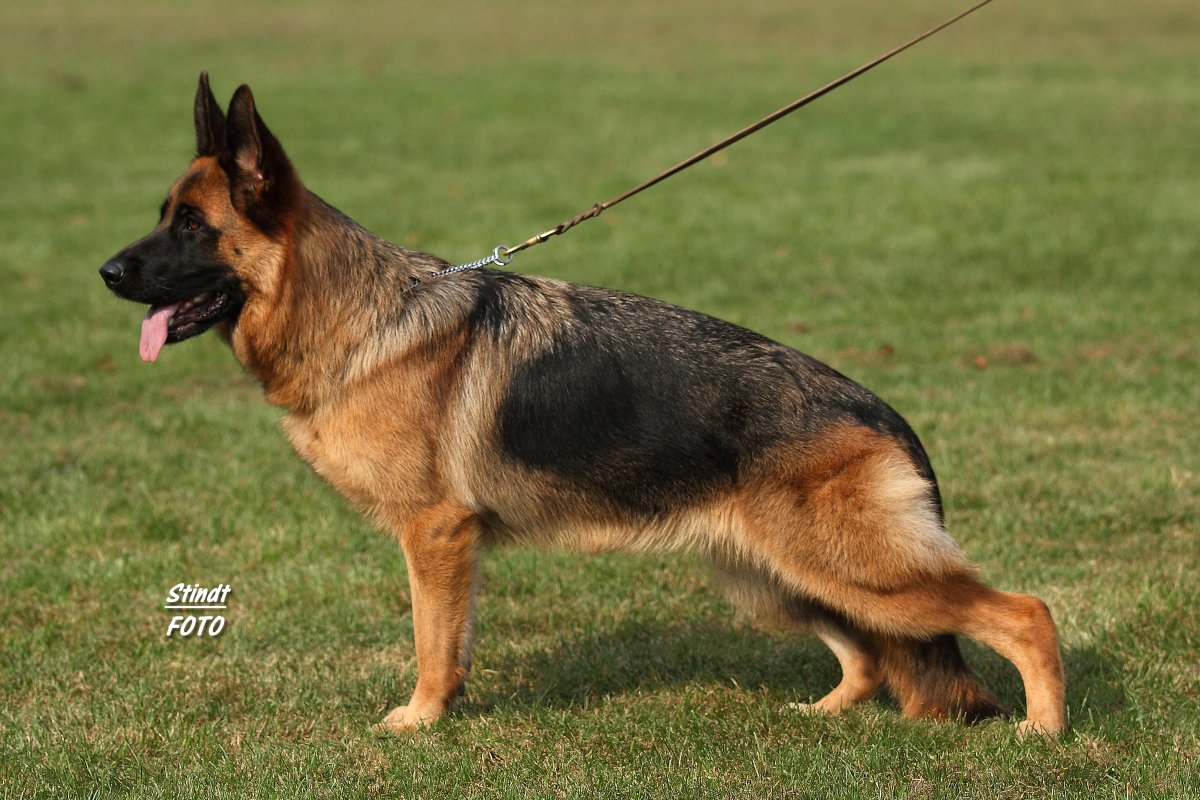 Großer, mittelkräftiger, substanz- und gehaltvoller, auffallend ausdrucksstarker, sehr gut pigmentierter, in korrekten Gebäudeverhältnissen stehender Rüde. Sehr gut geformter, kräftiger Kopf, hoher, ausgeprägter Widerrist, fester Rücken, sehr gute Kruppe. Sehr gute Winkelungen der Vor- und Hinterhand, gerade Front und Schrittfolge, sehr dynamische Gänge mit wirksamem Nachschub, sehr ergiebigem Vortritt und sehr guter Präsentation. TSB ausgeprägt.