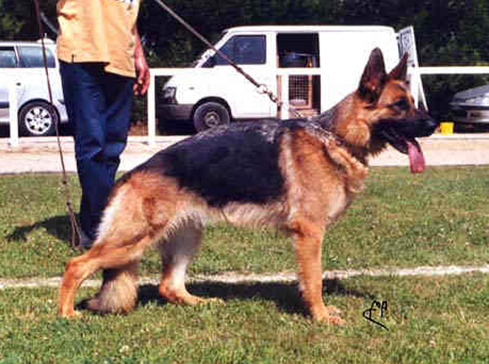 Koer report: Largely, centralstrongly, drying and firmly, stresses stretched. Good widerrist, firm back. The croup should be somewhat longer and less bent. Good bending, pronounced chest conditions, courses with effective supply and sufficient free precedence, spacecreating well straight front, slightly narrow-stepping. UCB pronouncedly; discharges. --------> Judge report: Well medium sized, centralstrong, stretched Ruede with good pigment and harmonious alignment. Strong, expressionful head. Go...Read more