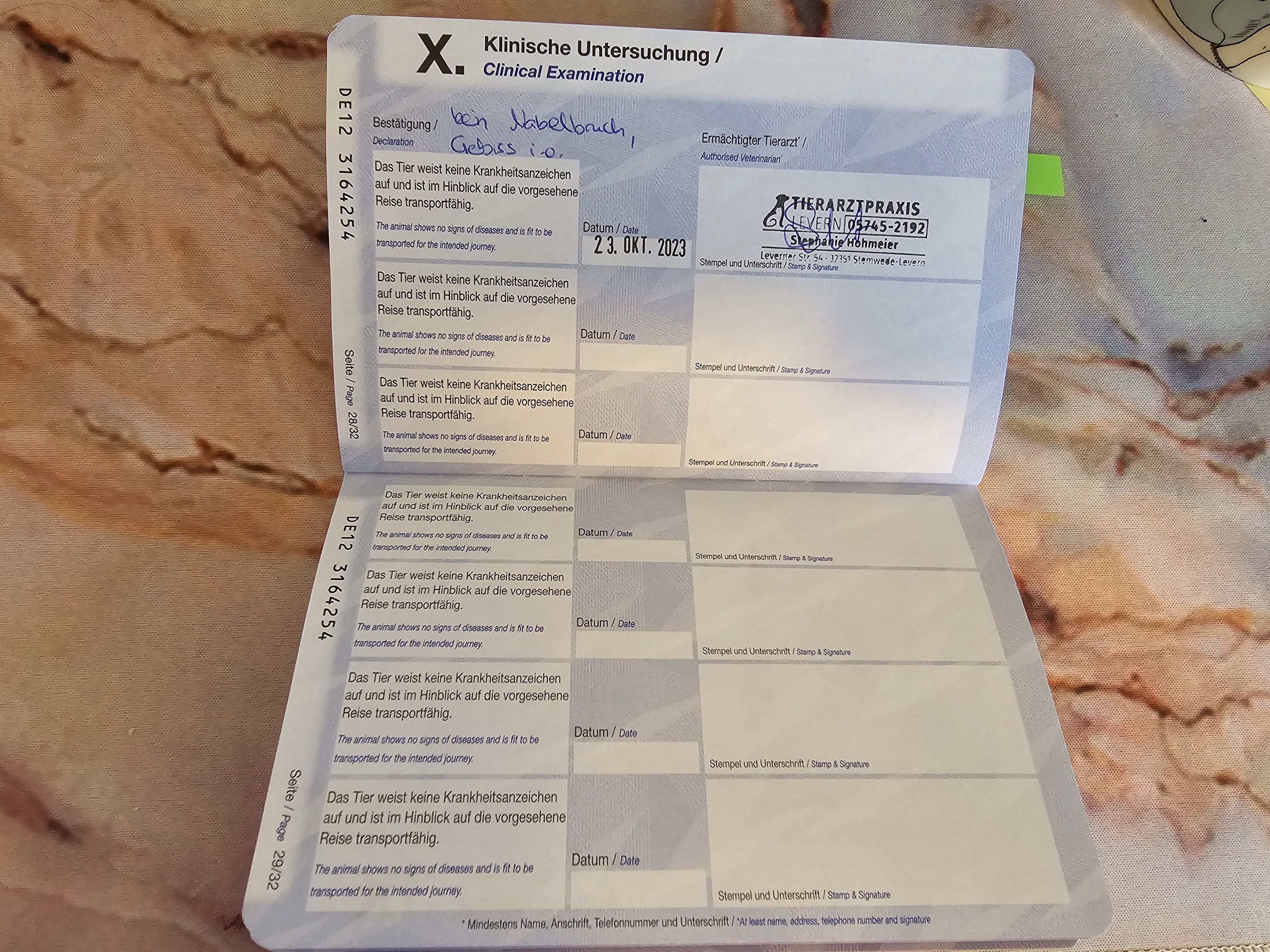 | October 23, 2023 | Health Certificate | Germany |